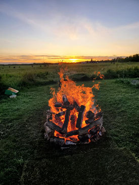 Lighting my first fire, hands trembling as I prepared coals for my own feet, I surrendered. The first night’s flames rose wild and ferocious, burning a full circle of grass around me as if clearing space for what was coming.